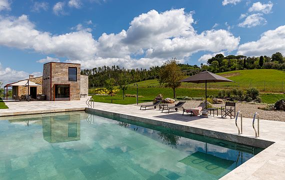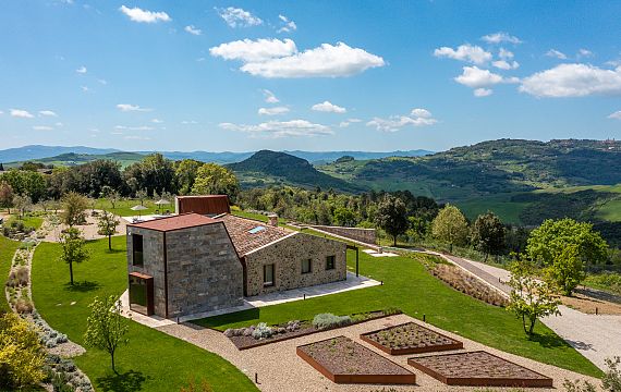 Villa Volterra, unique in its kind, is in a dominating and spectacular position overlooking one of the gems of Tuscany, Volterra, famous for its art, history and alabaster. It is immersed in a delightful countryside, rich in contrasts, colours, sounds and atmosphere.