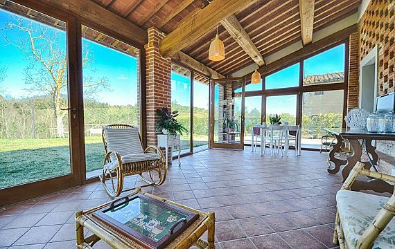 Villino Giovanna has been recently rennovated from an ancient barn nestling deep in the Tuscan countryside. The villa interiors are tastefully furnished and offer 3 bedrooms, 3 bathrooms and a nice living room with large glass windows looking over the garden, the pool and the surrounding landscape.
