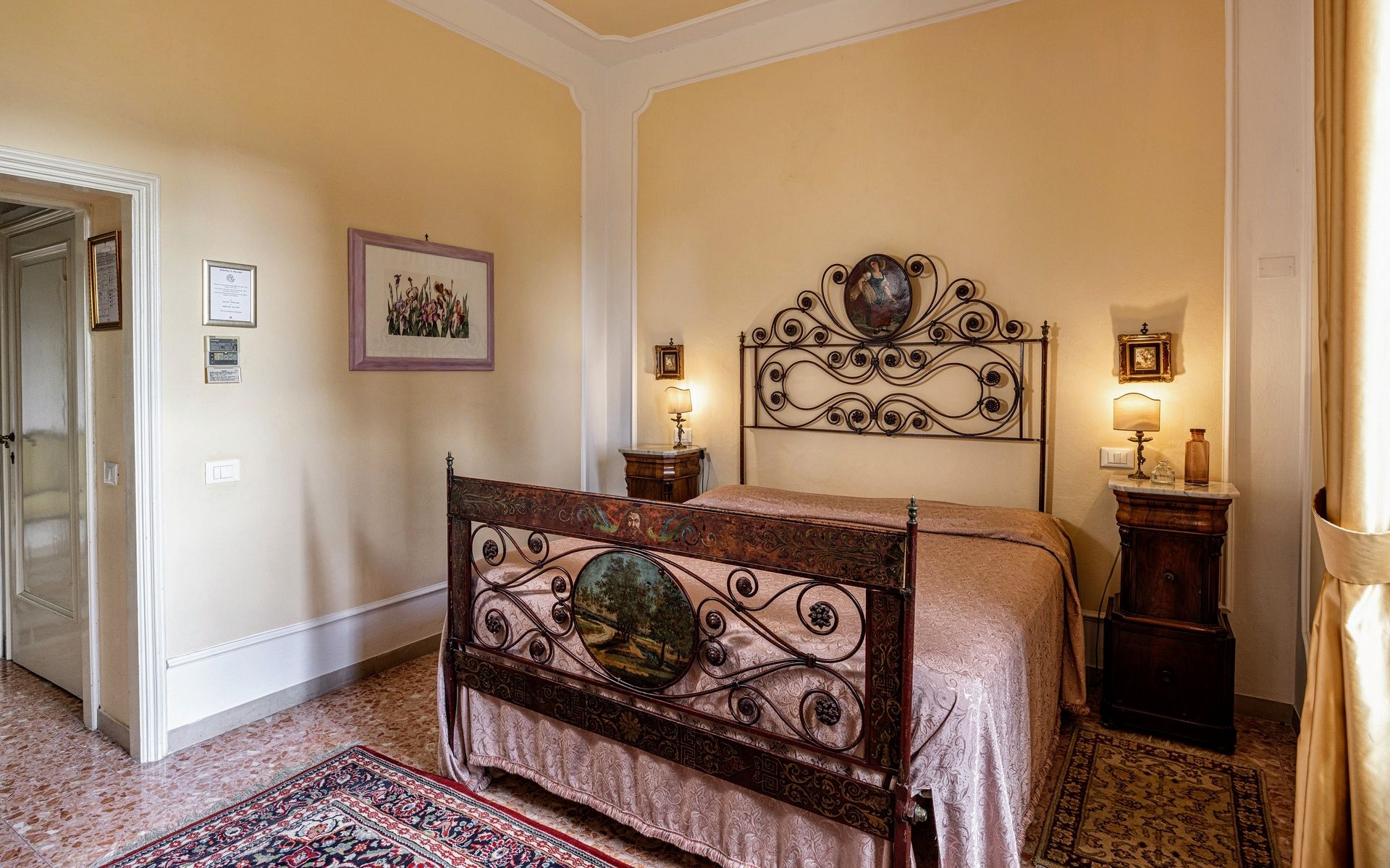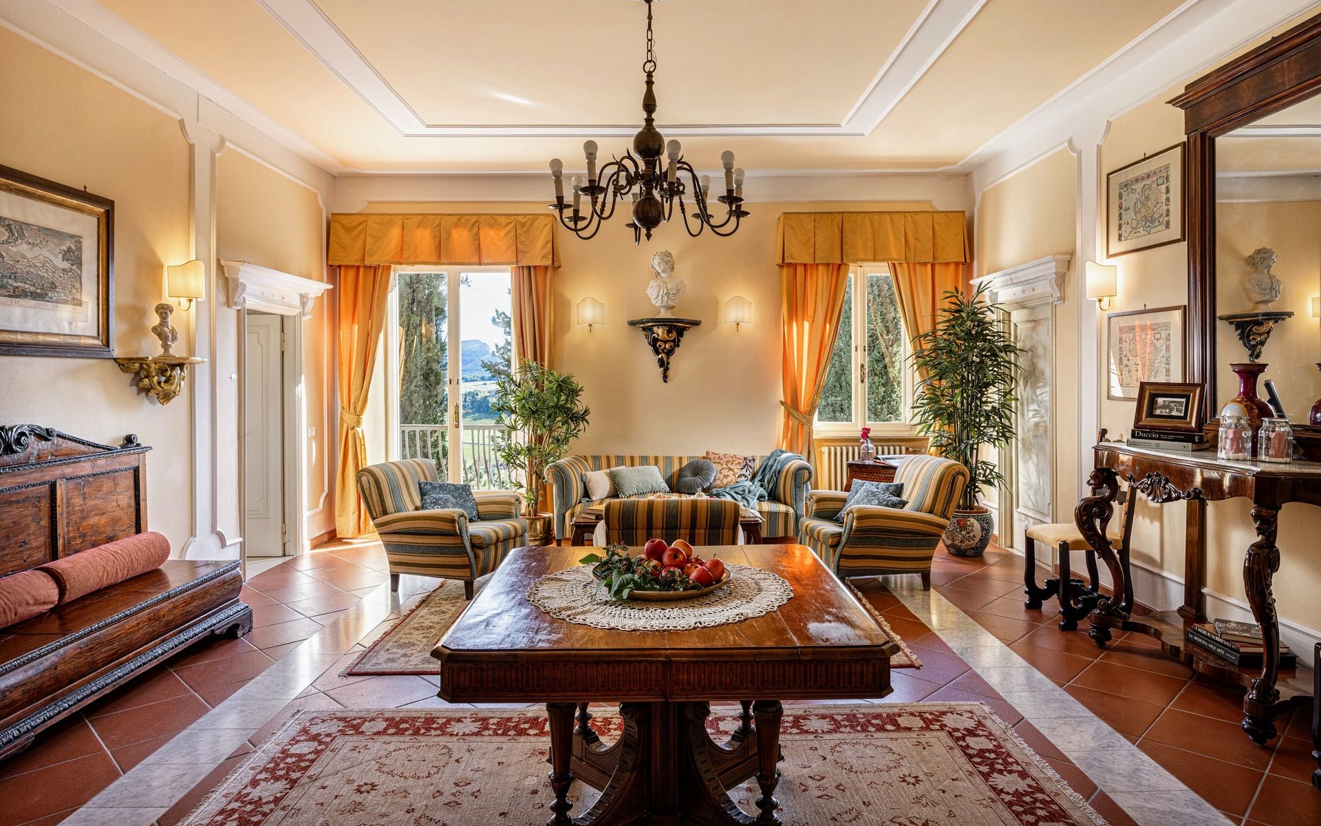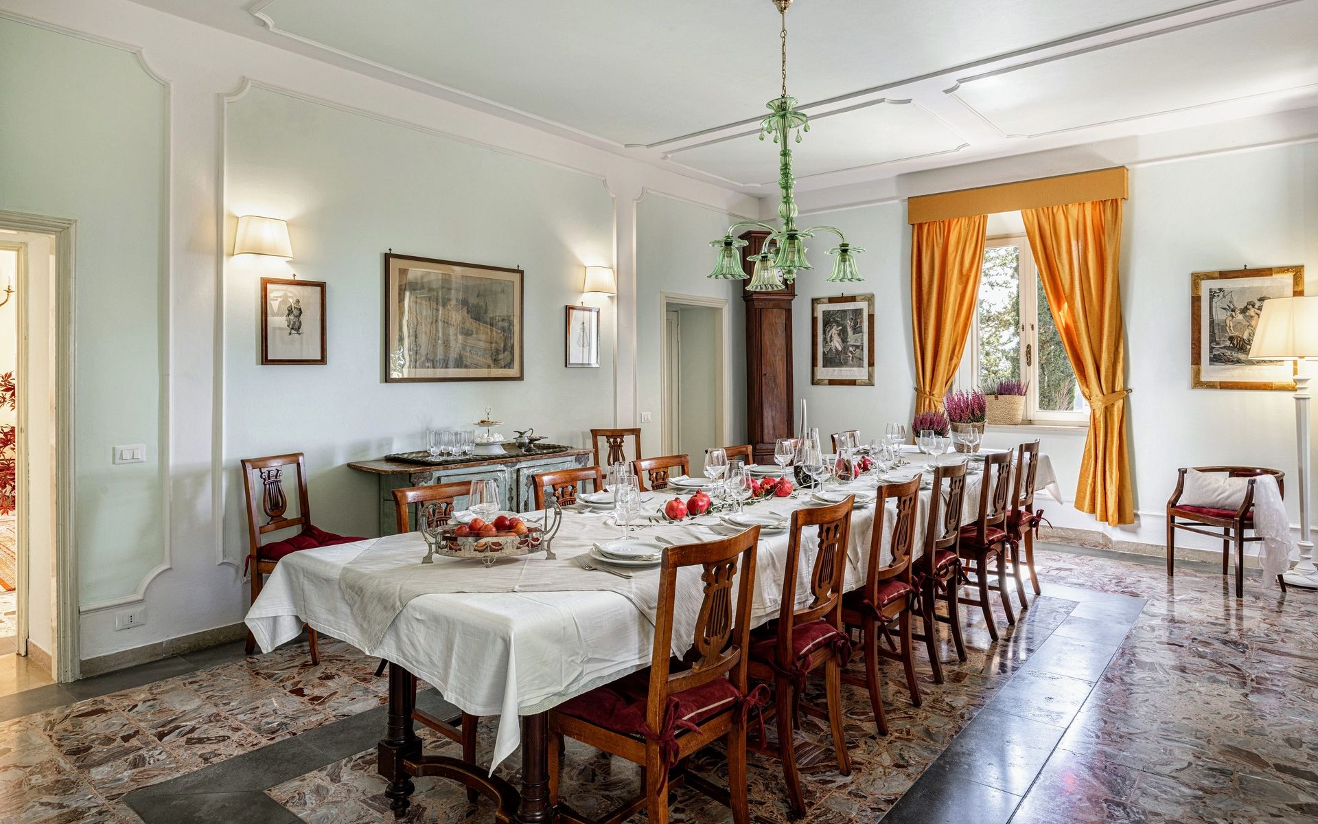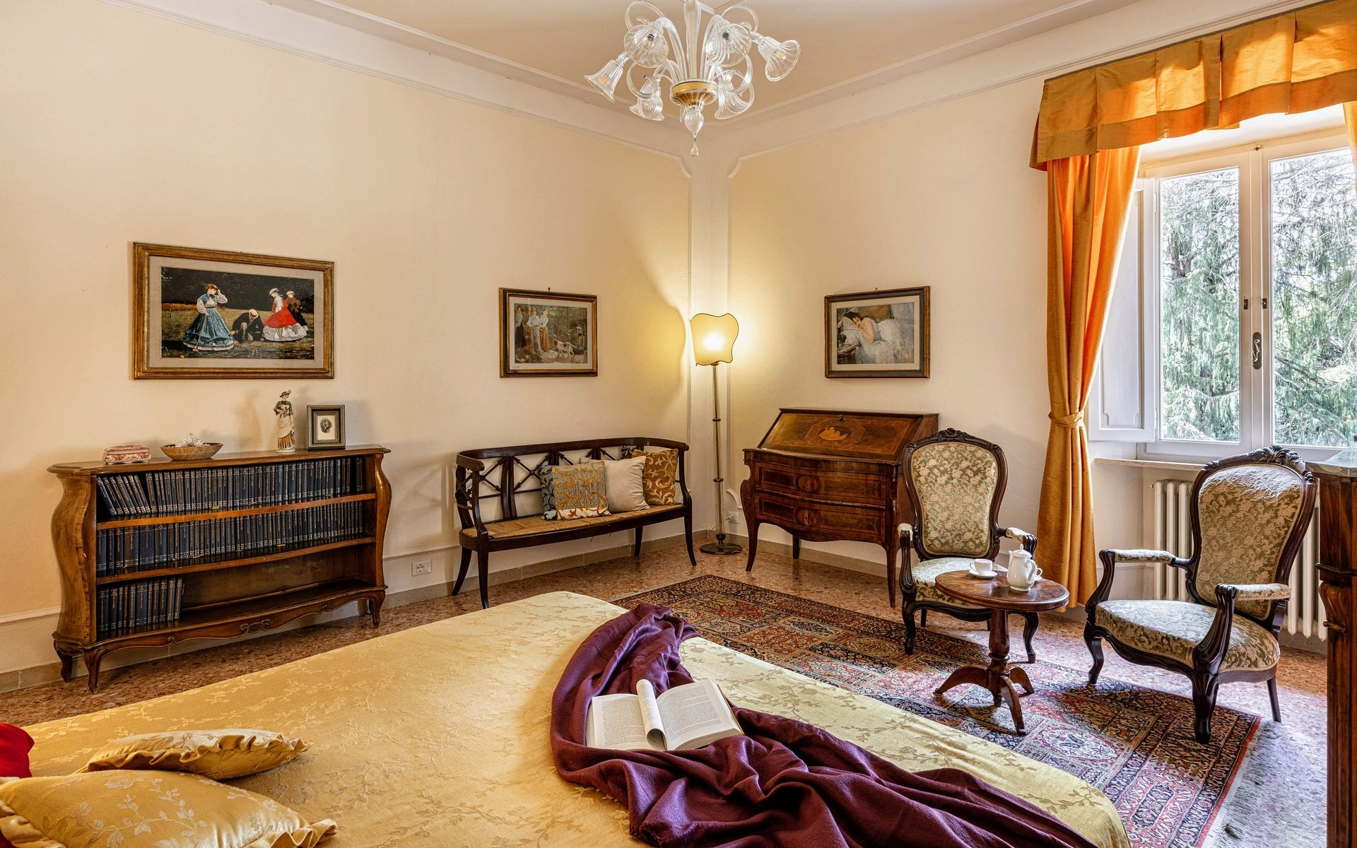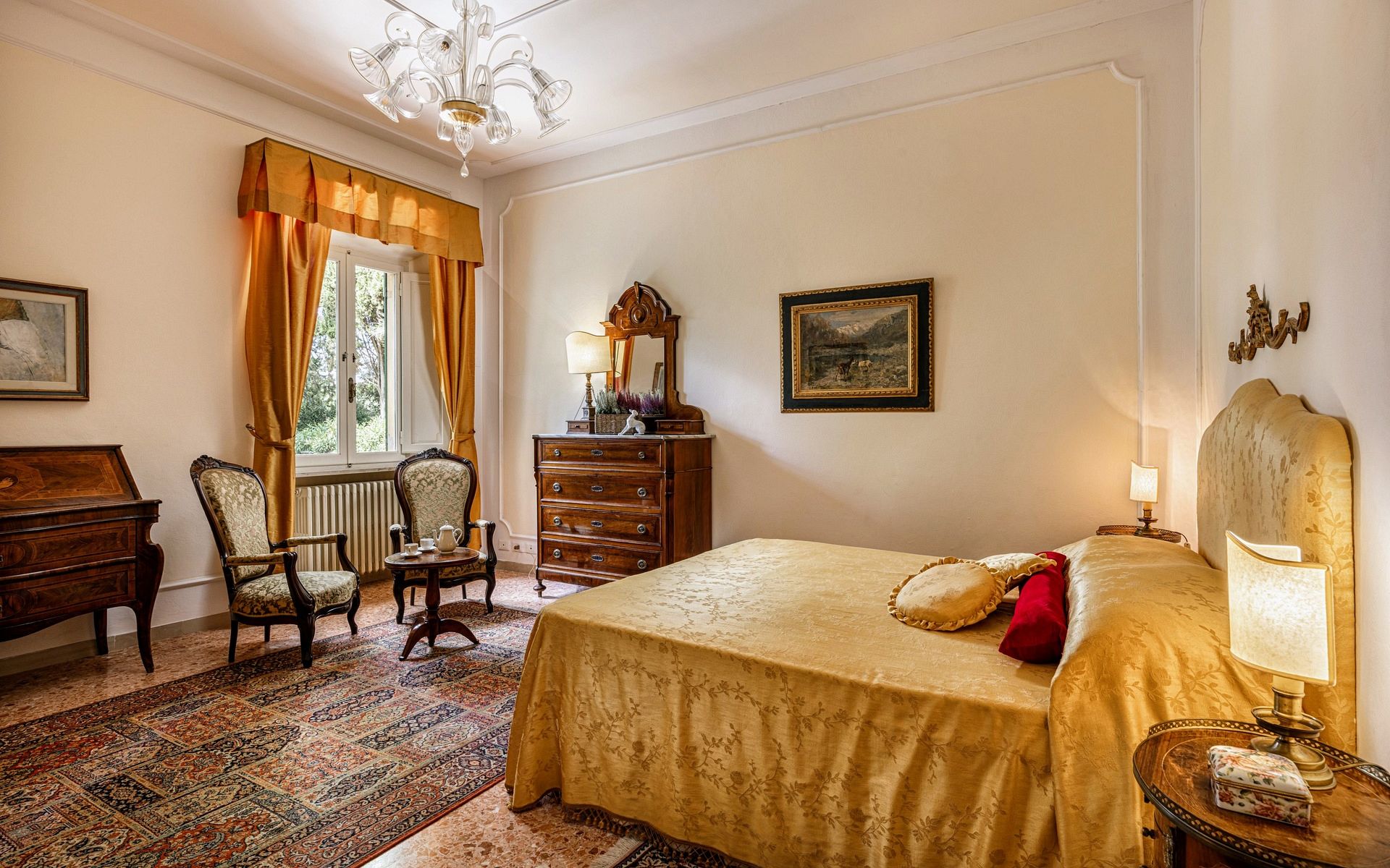 The ground floor shows the great rooms typical of the eighteen century villas inspired by the palladian style. On the right side of the large entrance there is a wide and bright living room which is the largest and the oldest room of the building. Featured by great vaults, is enhanced by a rare fireplace in green marble and is furnished with luxurious and antique furnitures. On the left side of the entrance there is the dining room and from there you can access to the kitchen, which has been completely renovated and is composed of a wide marble plan which allows a very comfortable cooking, it is also equipped with every kitchen tools and cooking technologies. On this floor there is available one double bedroom with bathroom with disabled facilities.