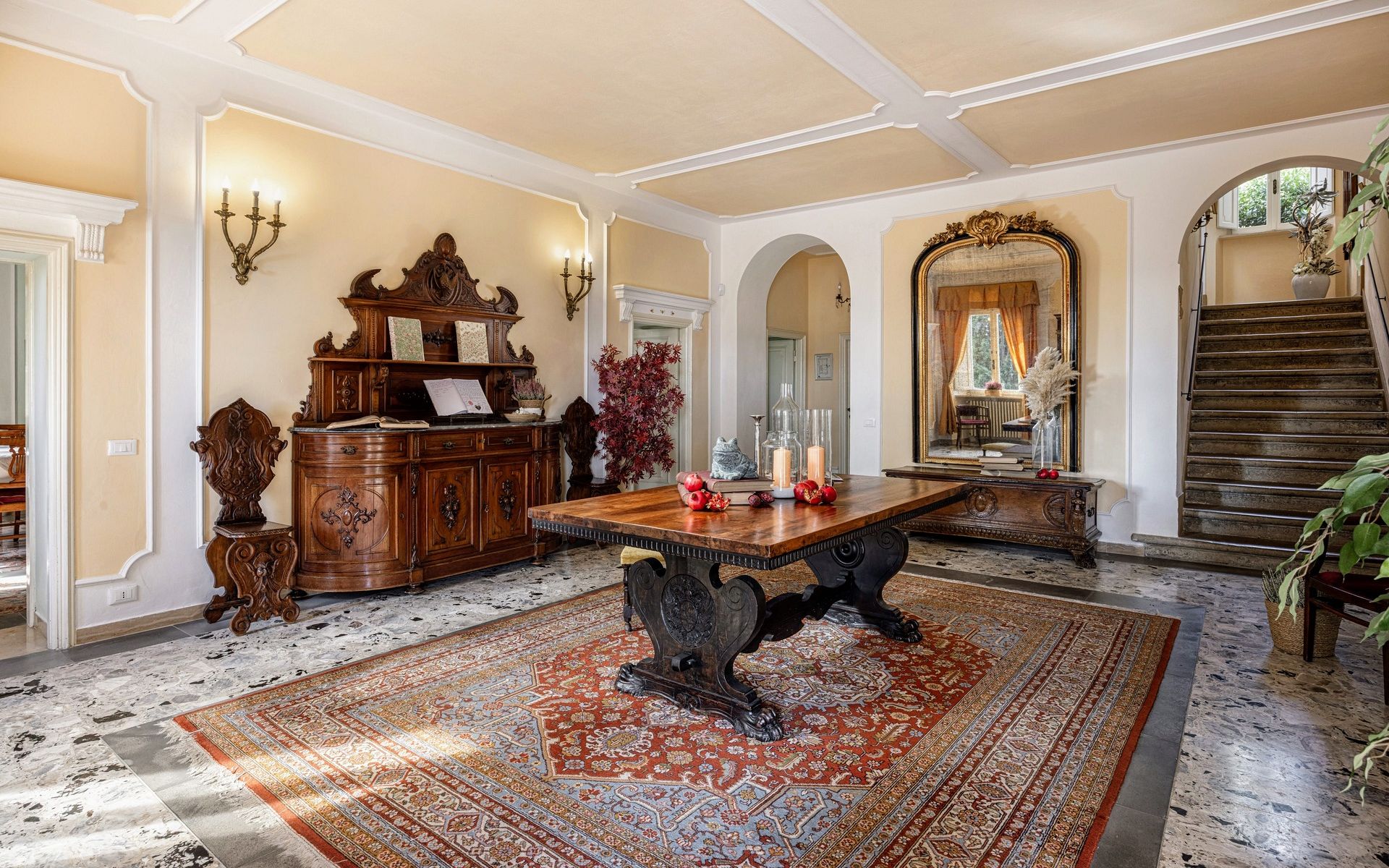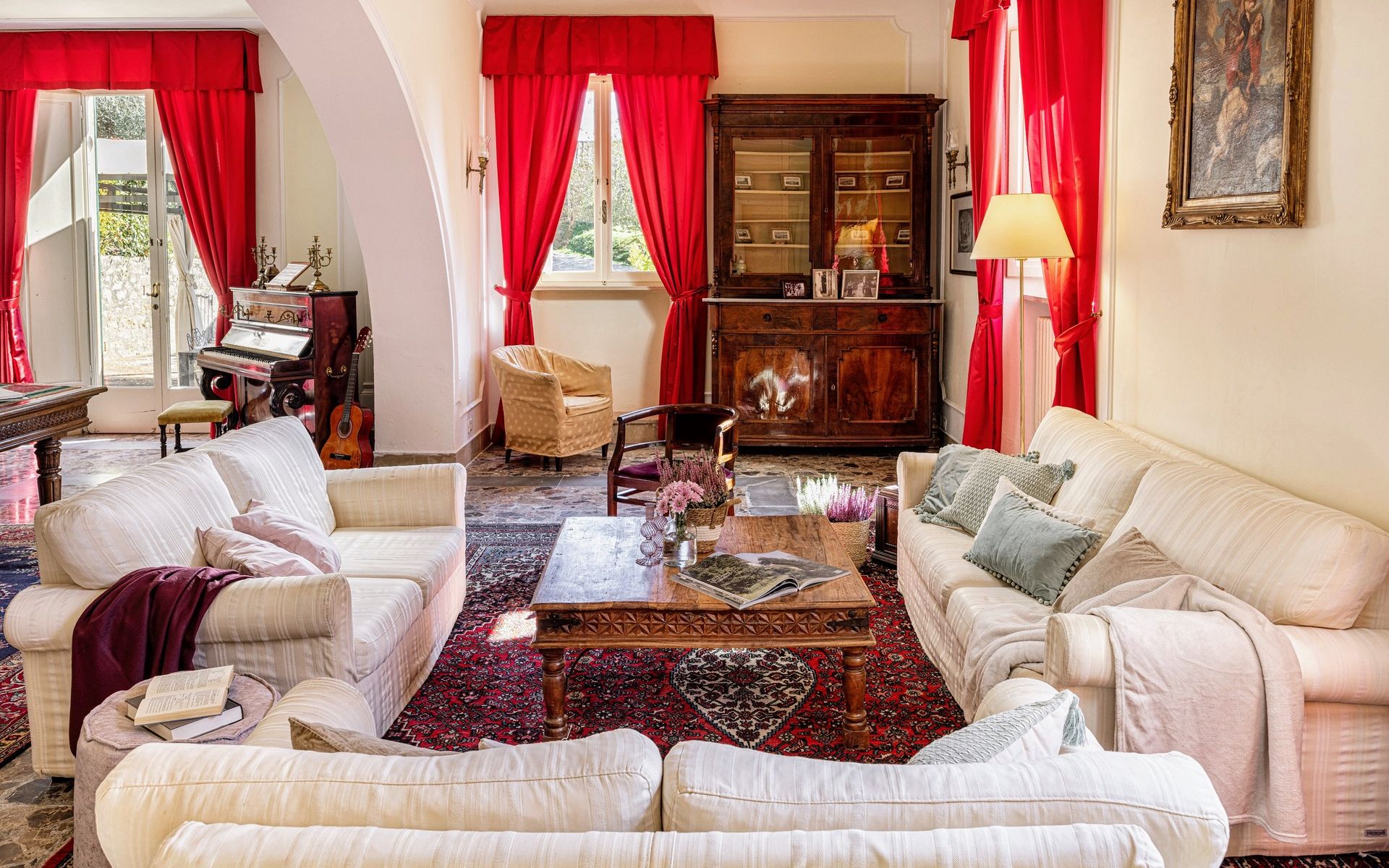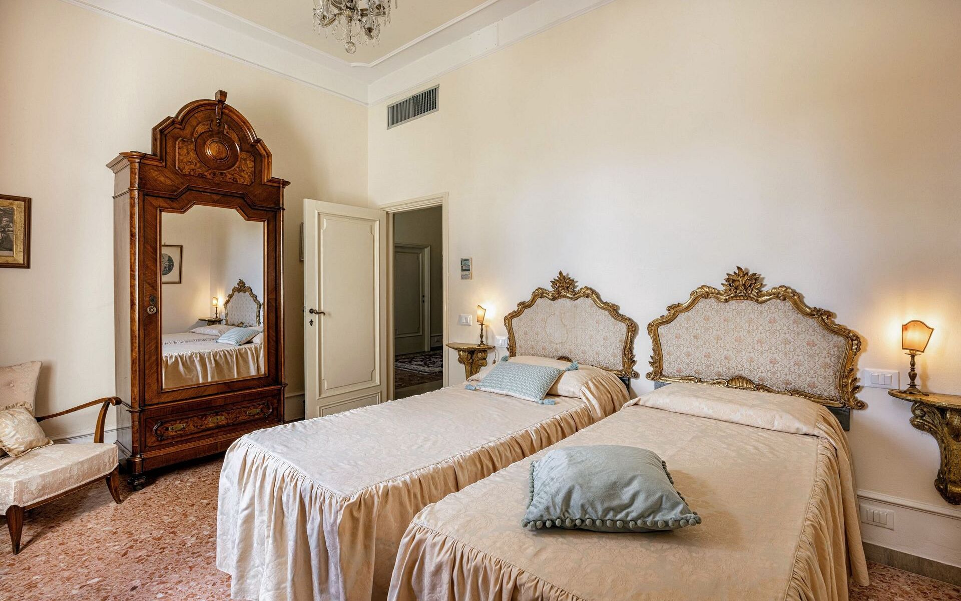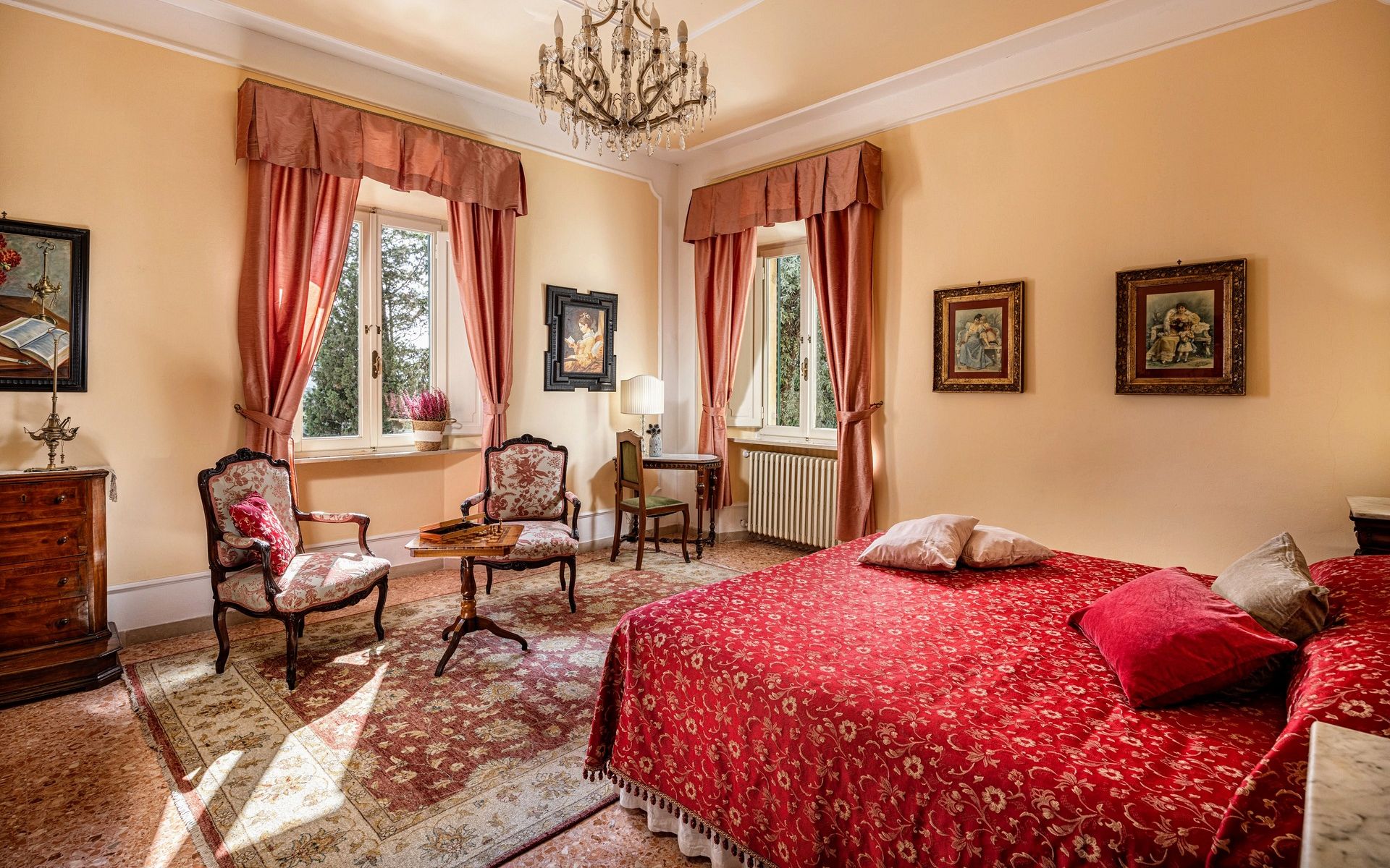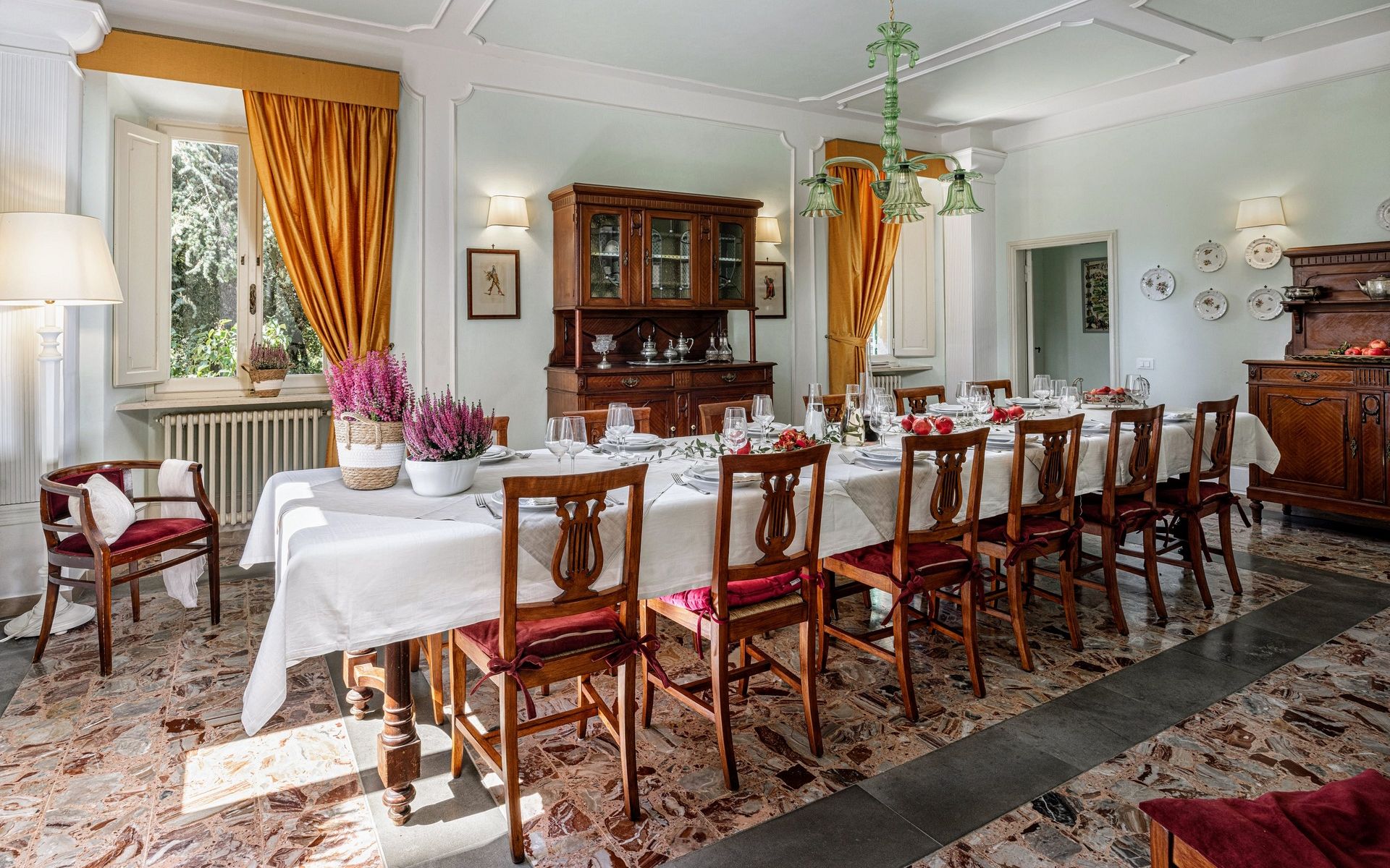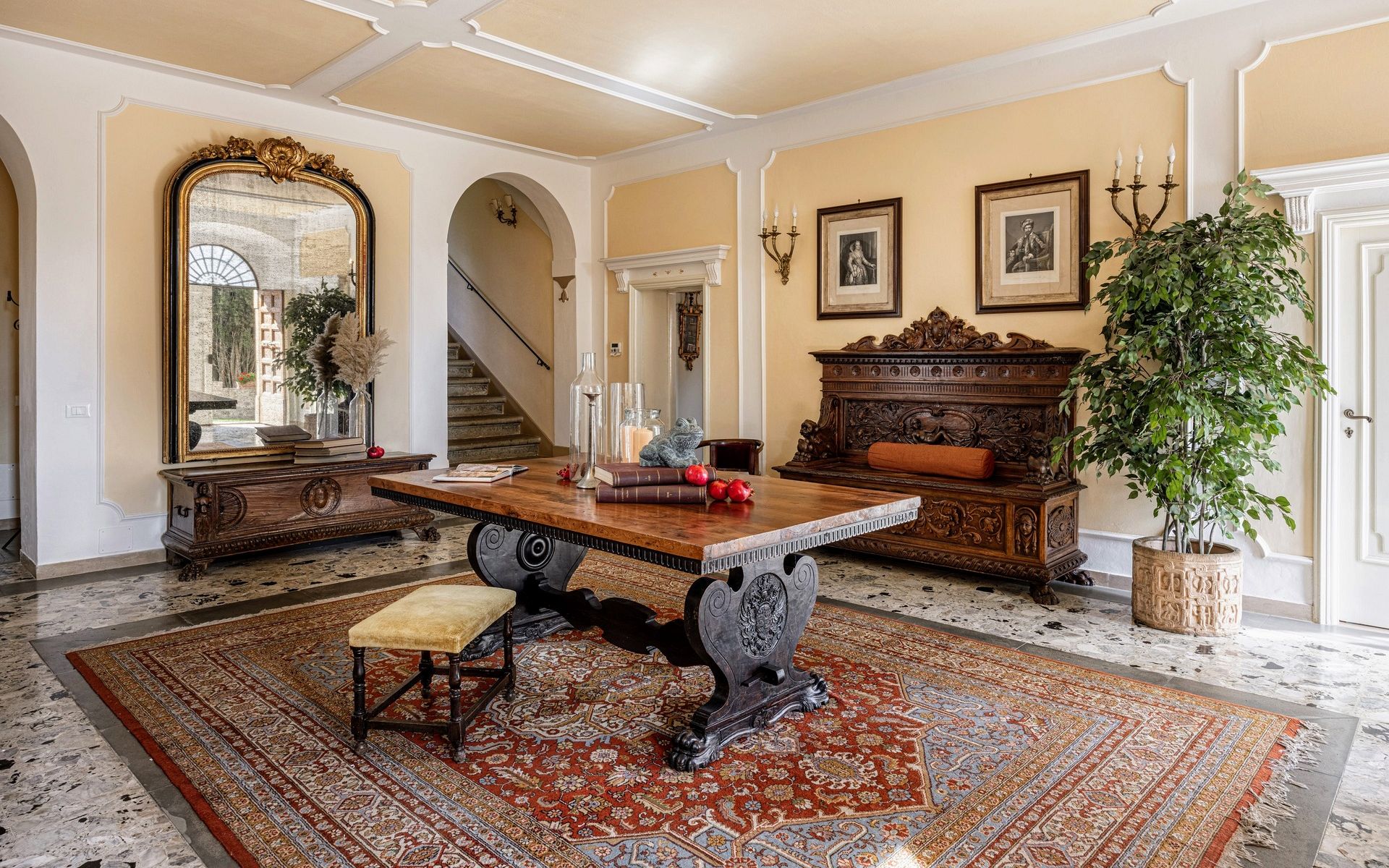 The ground floor shows the great rooms typical of the eighteen century villas inspired by the palladian style. On the right side of the large entrance there is a wide and bright living room which is the largest and the oldest room of the building. Featured by great vaults, is enhanced by a rare fireplace in green marble and is furnished with luxurious and antique furnitures. On the left side of the entrance there is the dining room and from there you can access to the kitchen, which has been completely renovated and is composed of a wide marble plan which allows a very comfortable cooking, it is also equipped with every kitchen tools and cooking technologies. On this floor there is available one double bedroom with bathroom with disabled facilities.