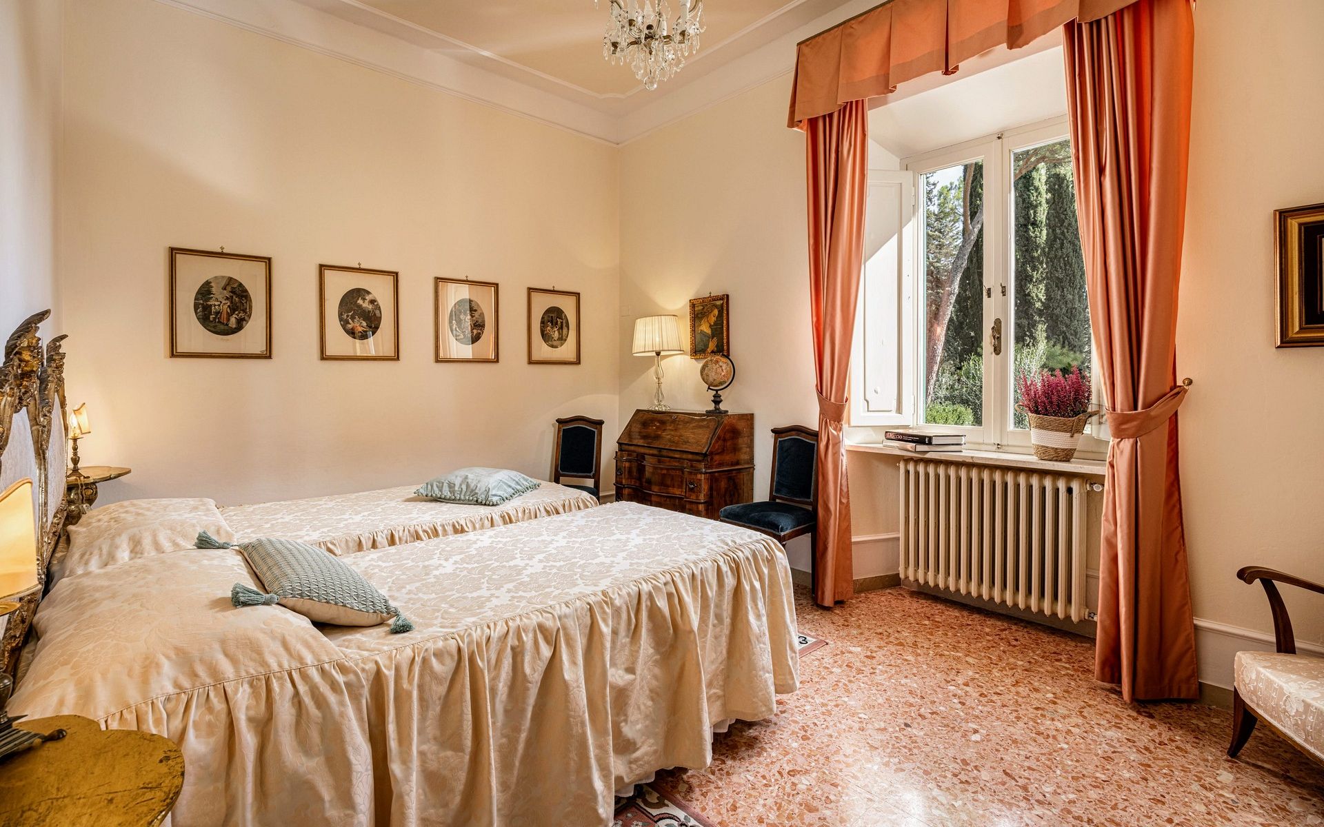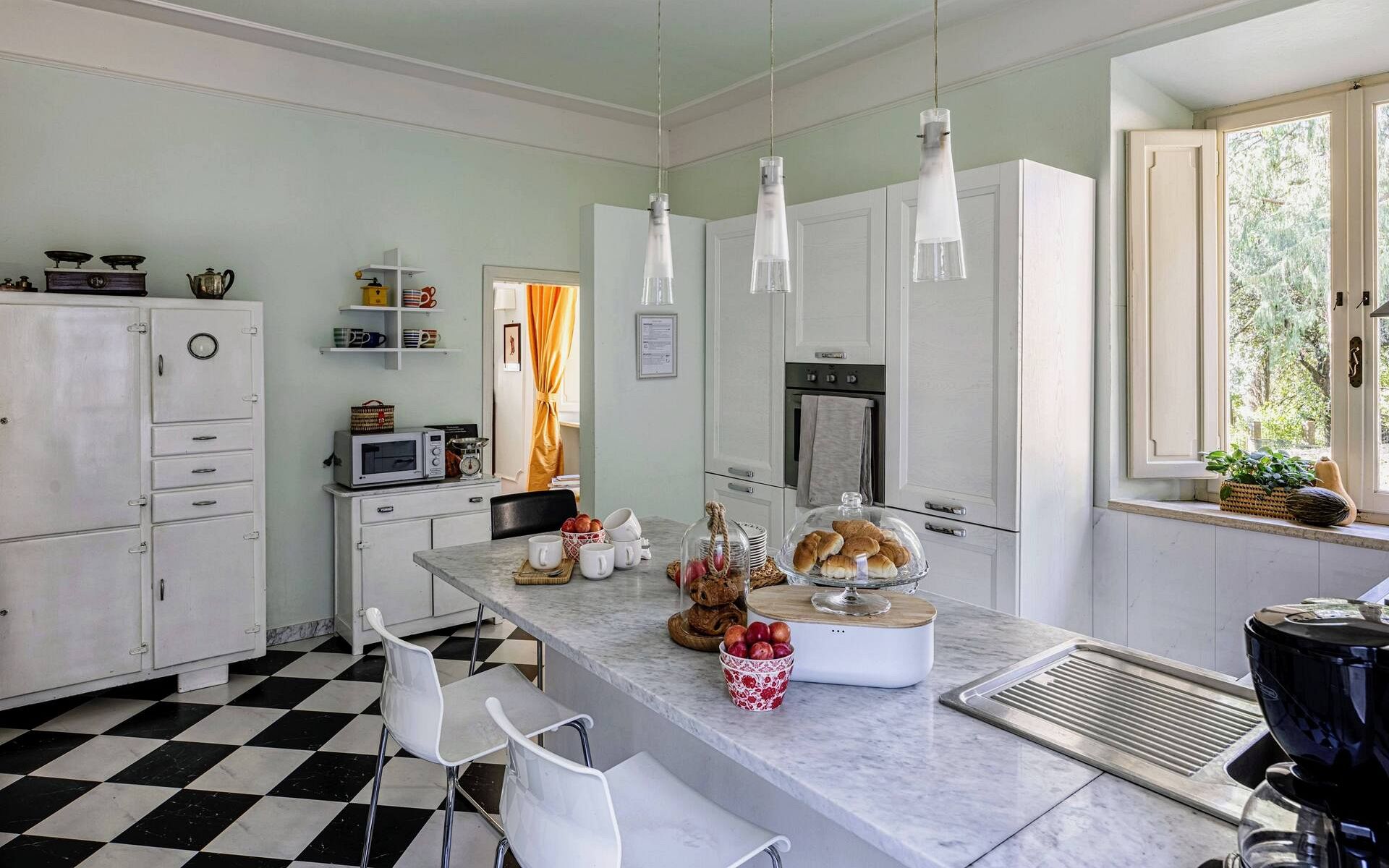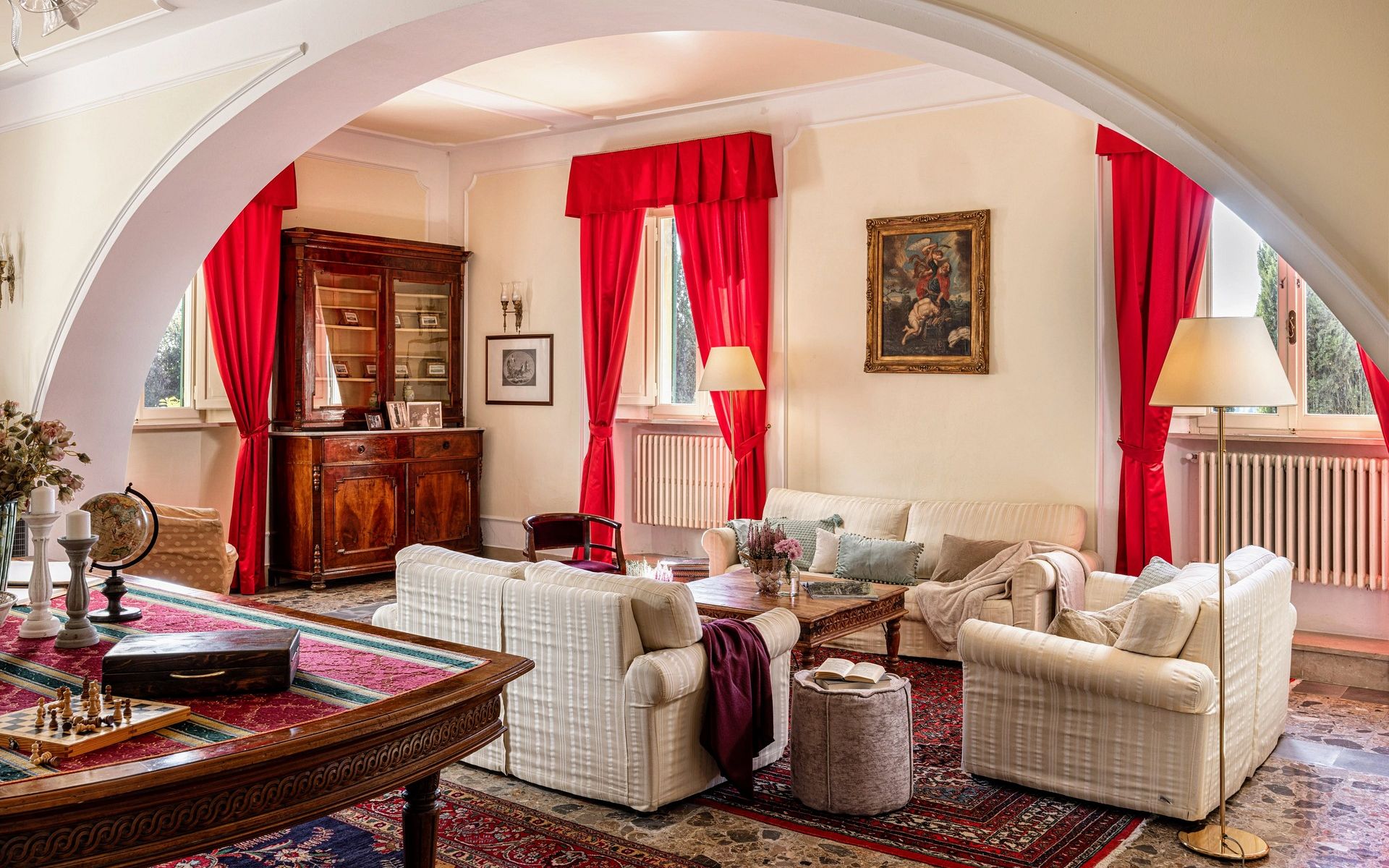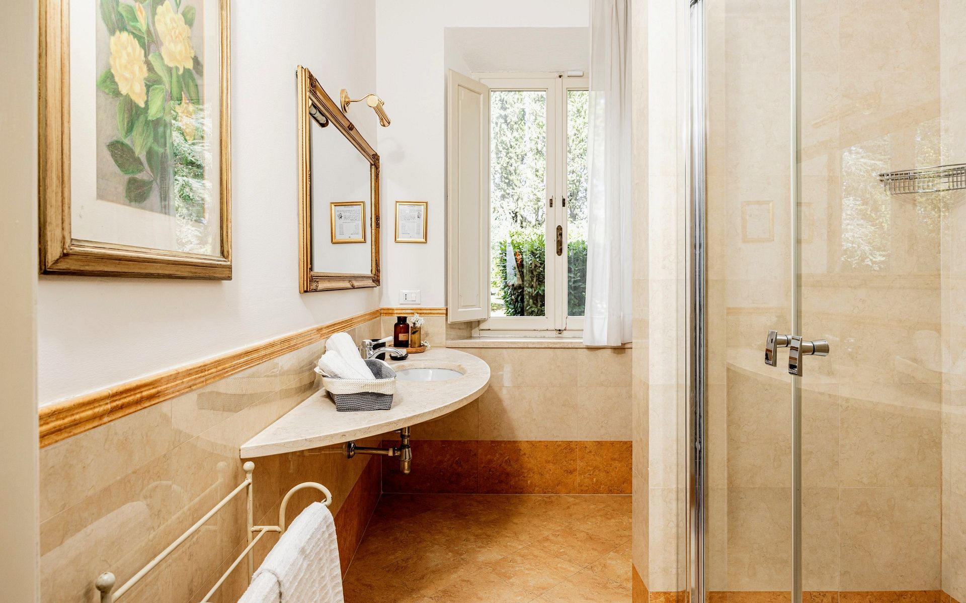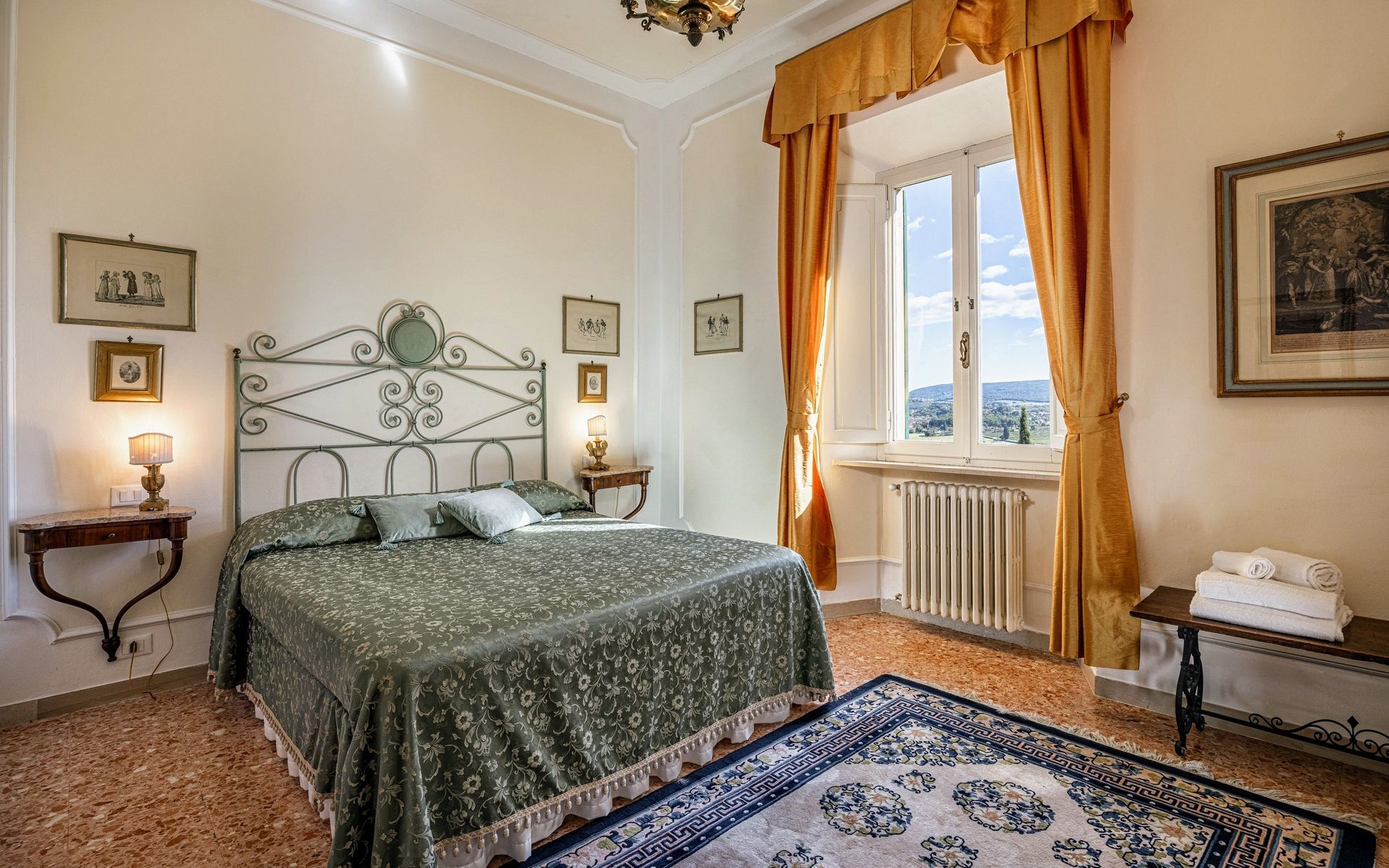 The ground floor shows the great rooms typical of the eighteen century villas inspired by the palladian style. On the right side of the large entrance there is a wide and bright living room which is the largest and the oldest room of the building. Featured by great vaults, is enhanced by a rare fireplace in green marble and is furnished with luxurious and antique furnitures. On the left side of the entrance there is the dining room and from there you can access to the kitchen, which has been completely renovated and is composed of a wide marble plan which allows a very comfortable cooking, it is also equipped with every kitchen tools and cooking technologies. On this floor there is available one double bedroom with bathroom with disabled facilities.