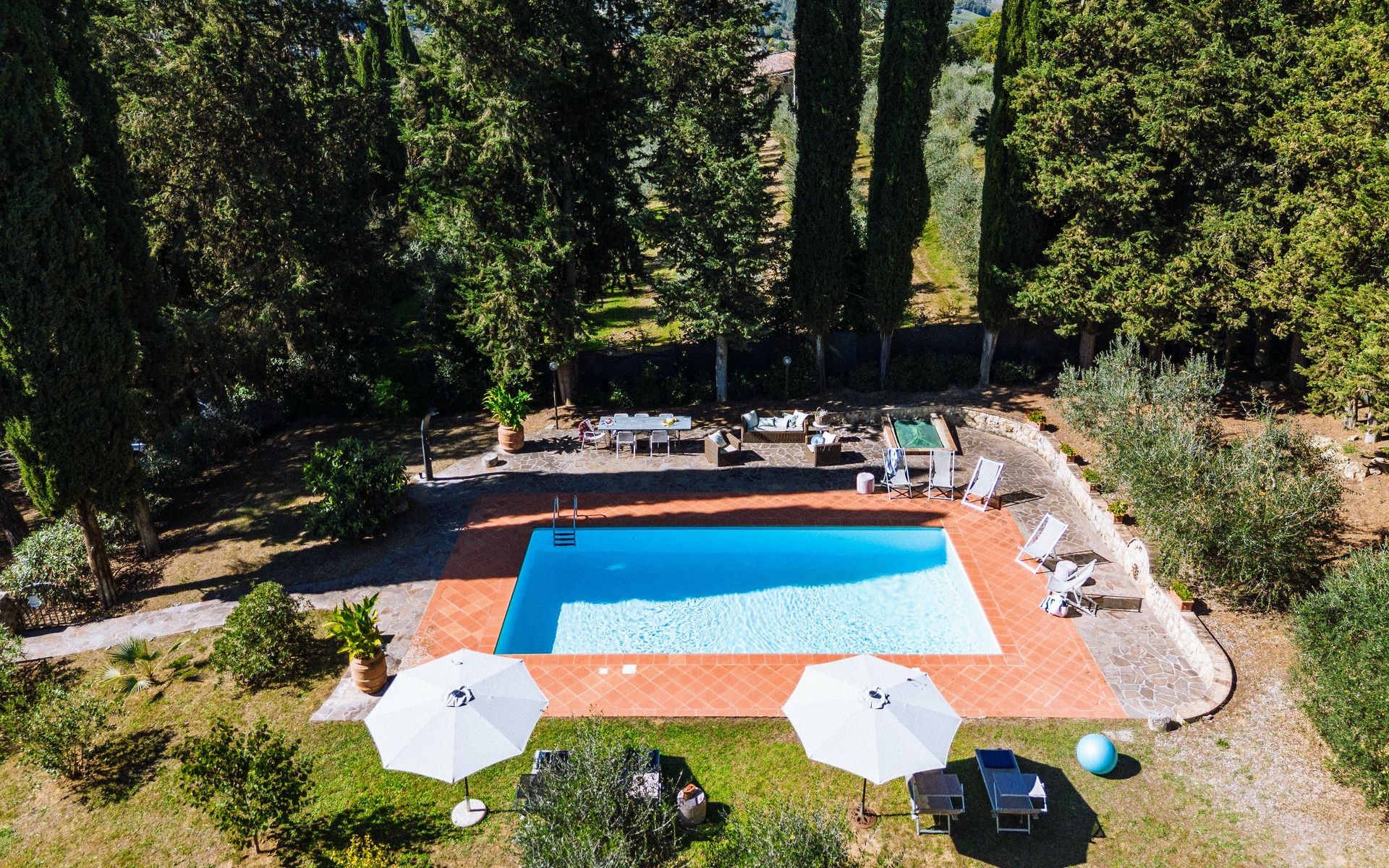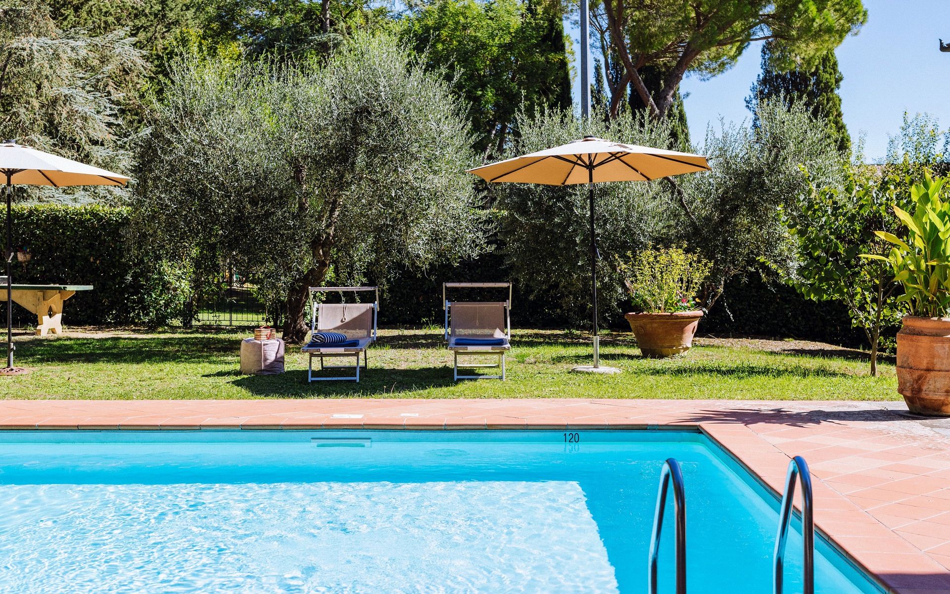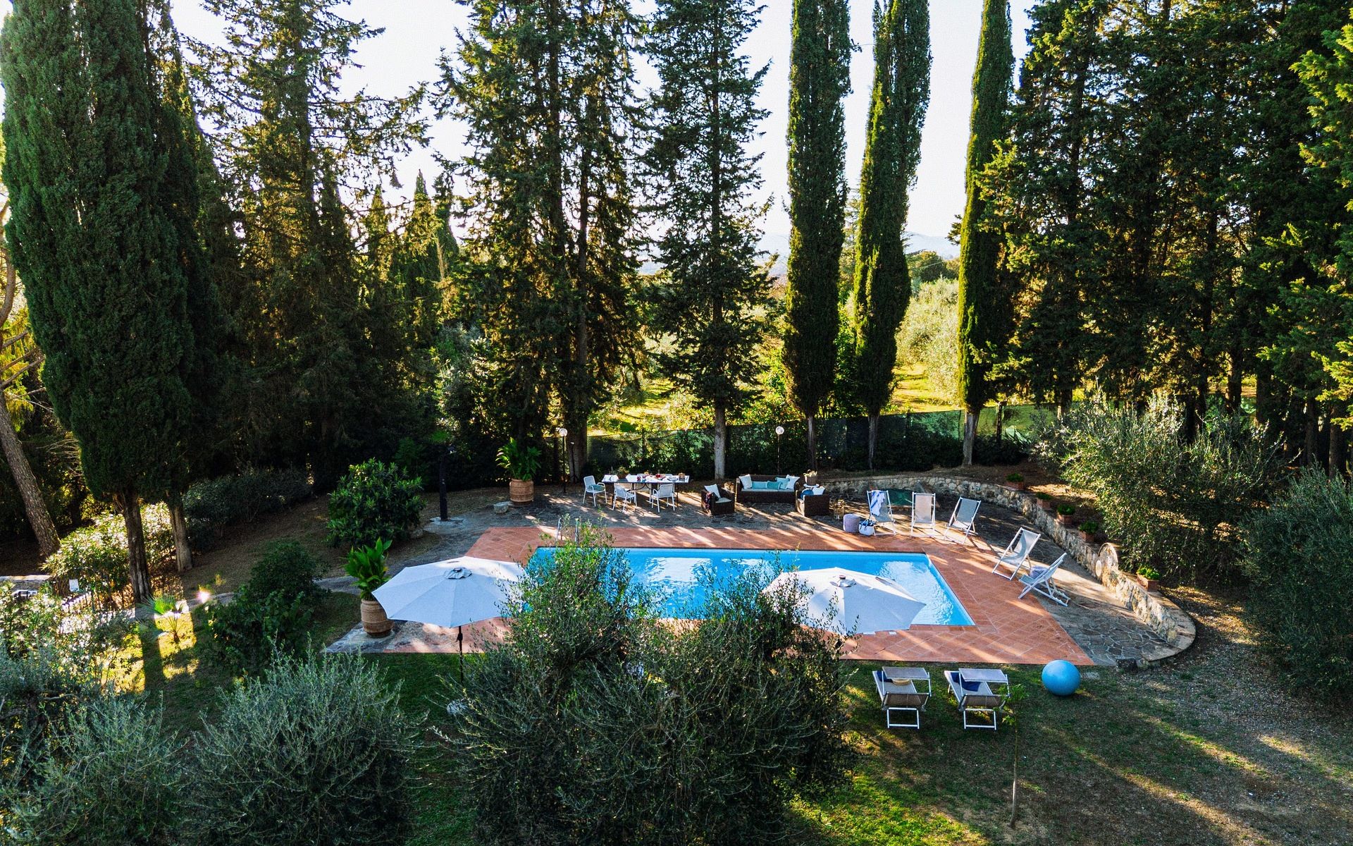 In a secluded area to the back of the villa, nestled among cypress and olive trees, is the swimming pool surrounded by a large green lawn. The pool (10 x 5 meters and 1,40-1,60 meters deep) is open from May 1st to October 31st.