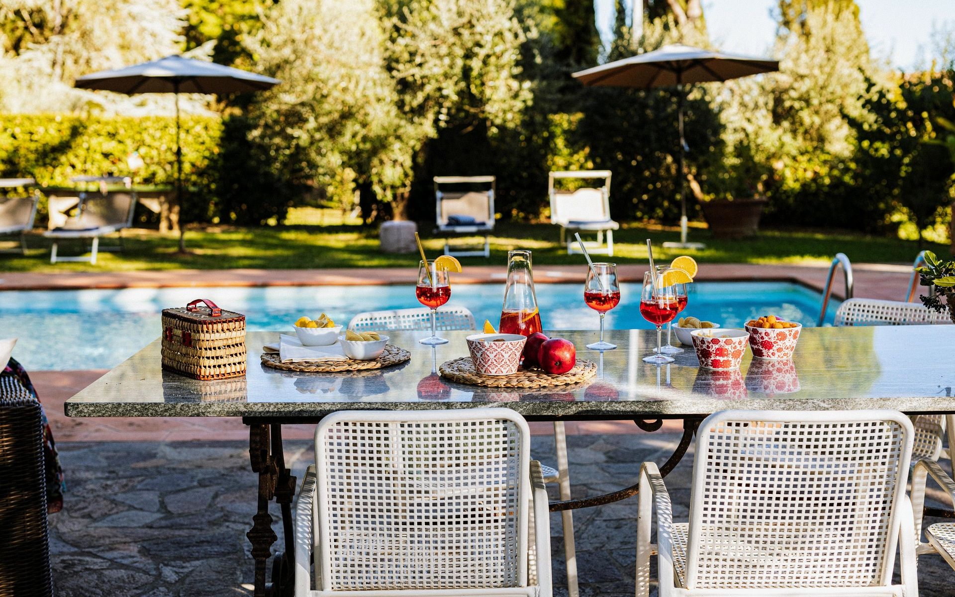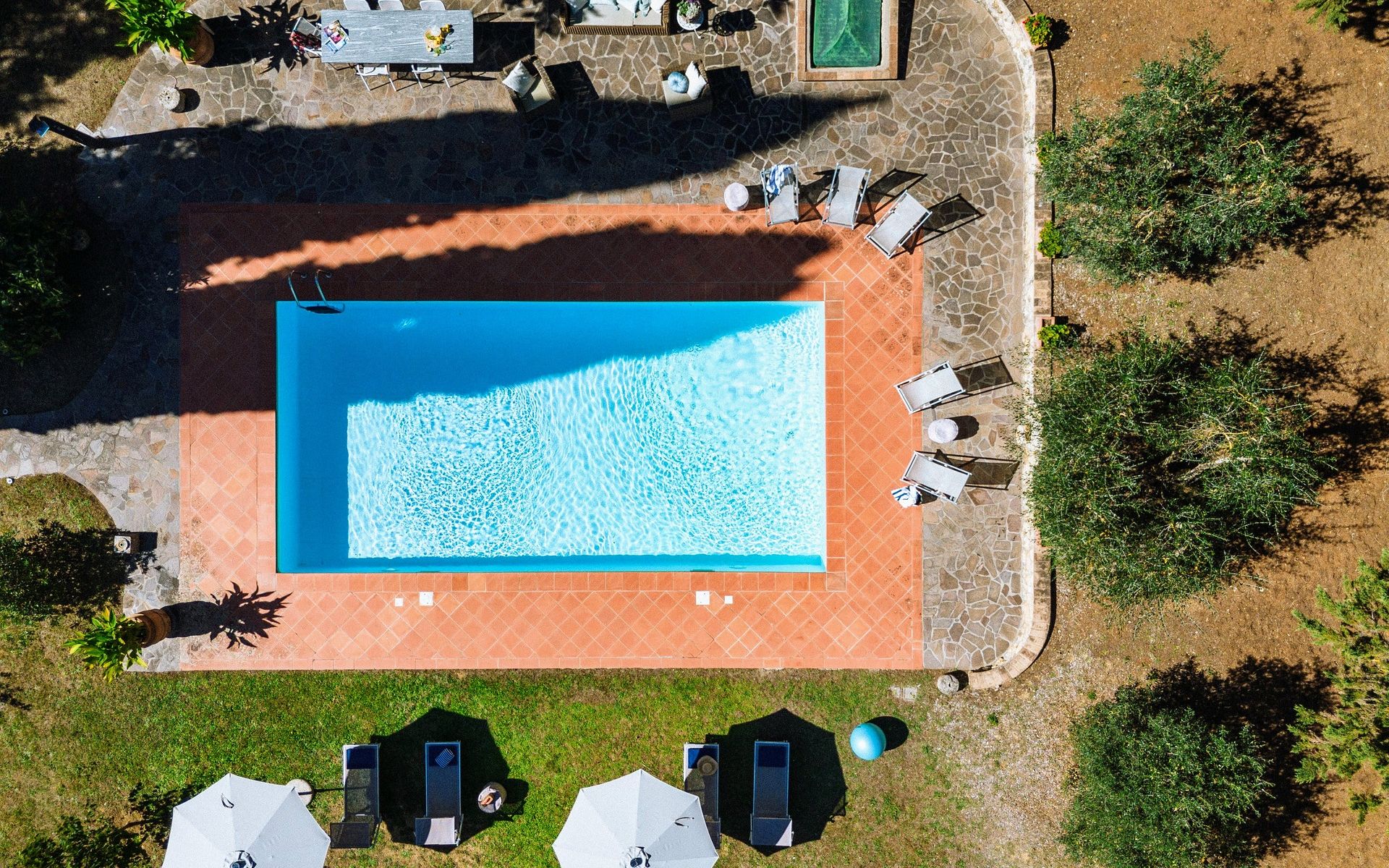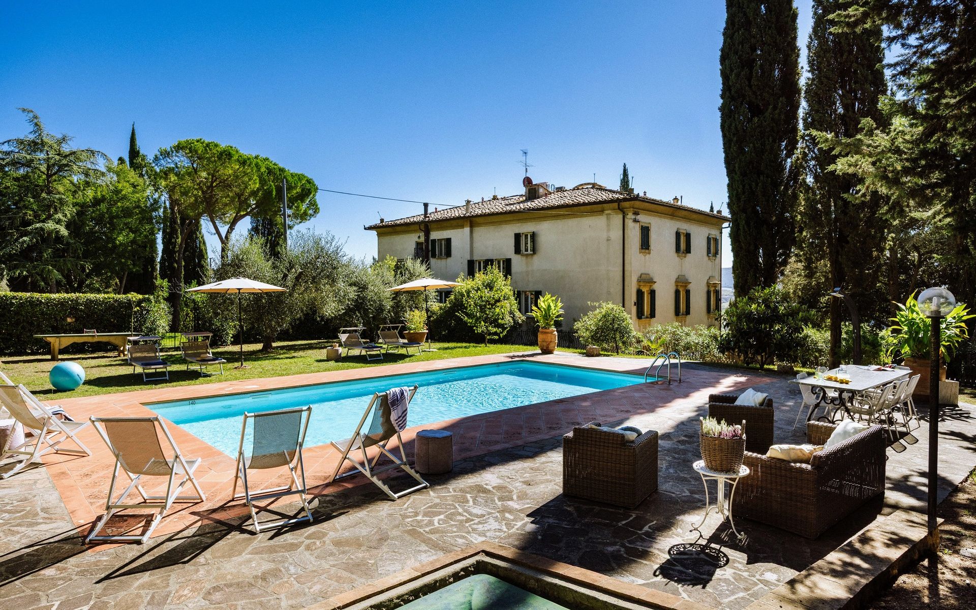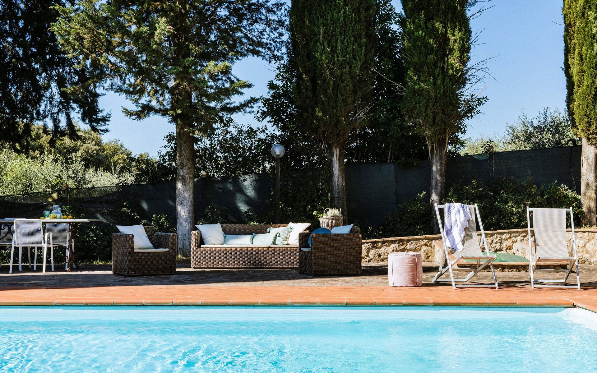 In a secluded area to the back of the villa, nestled among cypress and olive trees, is the swimming pool surrounded by a large green lawn. The pool (10 x 5 meters and 1,40-1,60 meters deep) is open from May 1st to October 31st.